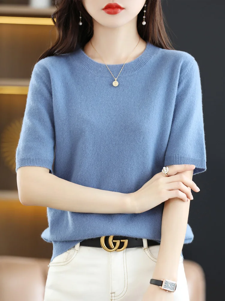 High-concerned chemical: None Craft of Weaving: Knit Pattern: A-straight Yarn Thickness: Fine yarn Percentage of Material: 95% above Season: Spring/Summer Age: 25-34 Closure Type: Pullover Pattern Type: Solid Gender: Women Sleeve Length(cm): Short (4 – 16 Inch) Style: Casual Decoration: None Material: Acetate,POLYESTER Sleeve Style: regular Collar: O-Neck Clothing Length: regular Brand Name: KANNISAK Elasticity: High Strecth Fit Type: Regular Fit Origin: Mainland China CN: Anhui Closure Type: None